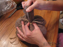Такую тыкву сшить совсем не трудно, глядя на этот подробный фото мастер класс. Главное, вырезать из бумаги нужный шаблон. Обратите внимание на то, что в готовую тыкву засыпают сначала немного фасоли, а уж потом заполняют её синтепоном или любым другим наполнителем. По материалам mydesertcottage.com