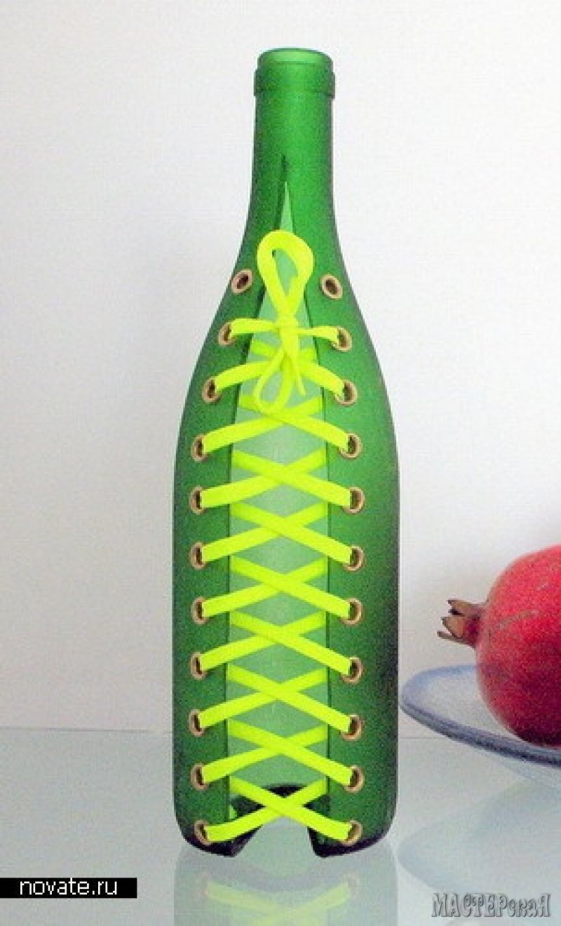 К примеру, бутылка на шнуровке. Выглядит очень реалистично. Кажется, что если попробовать затянуть шнурок, бутылка действительно уменьшится в обхвате.
