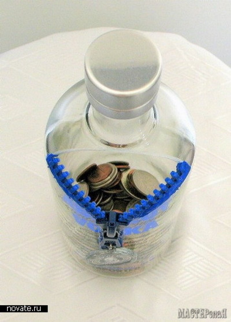 Для более решительных сбережений подойдет копилка из бутылки от водки. Тоже на молнии.