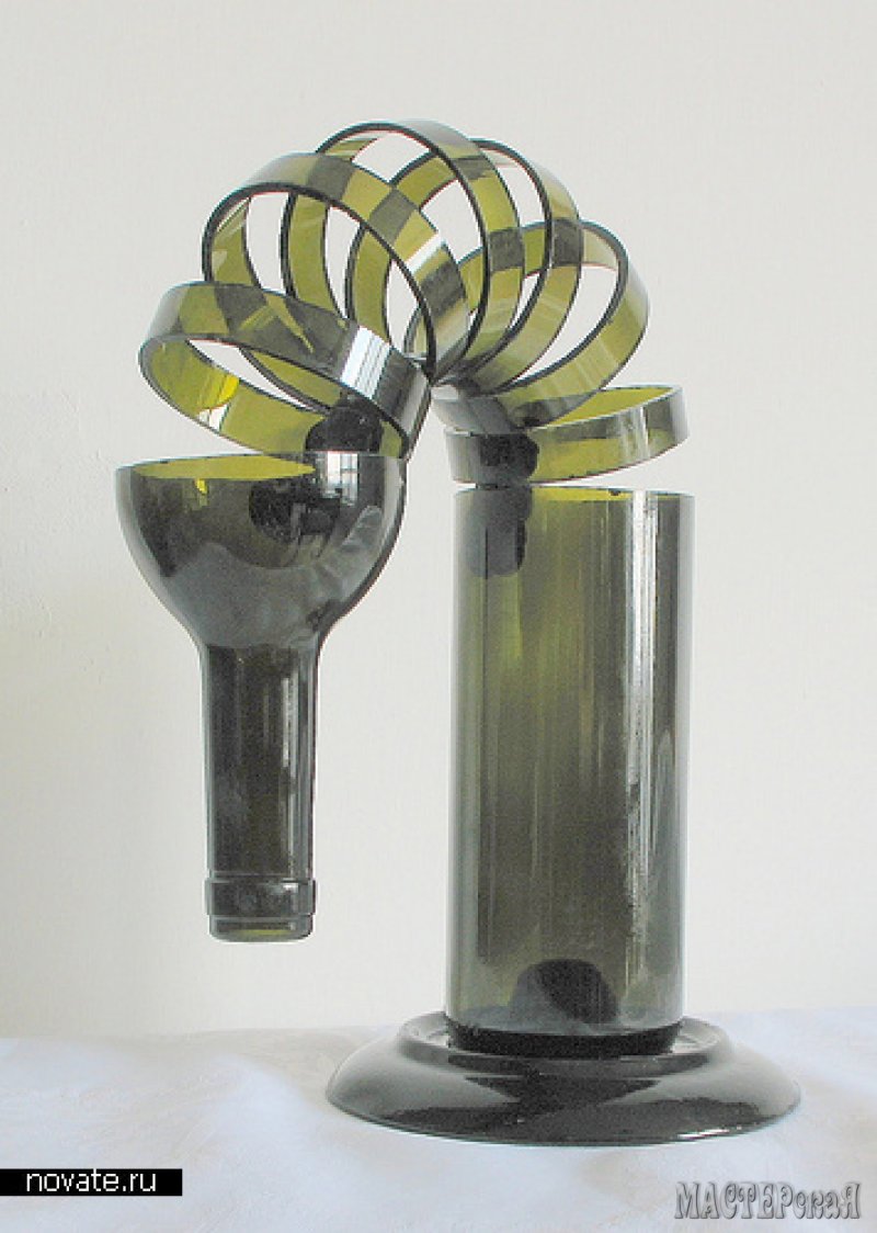 Он занимается ручной резкой бутылок и различным декорированием. В результате – броские украшения интерьера, которые послужат отличным подарком.