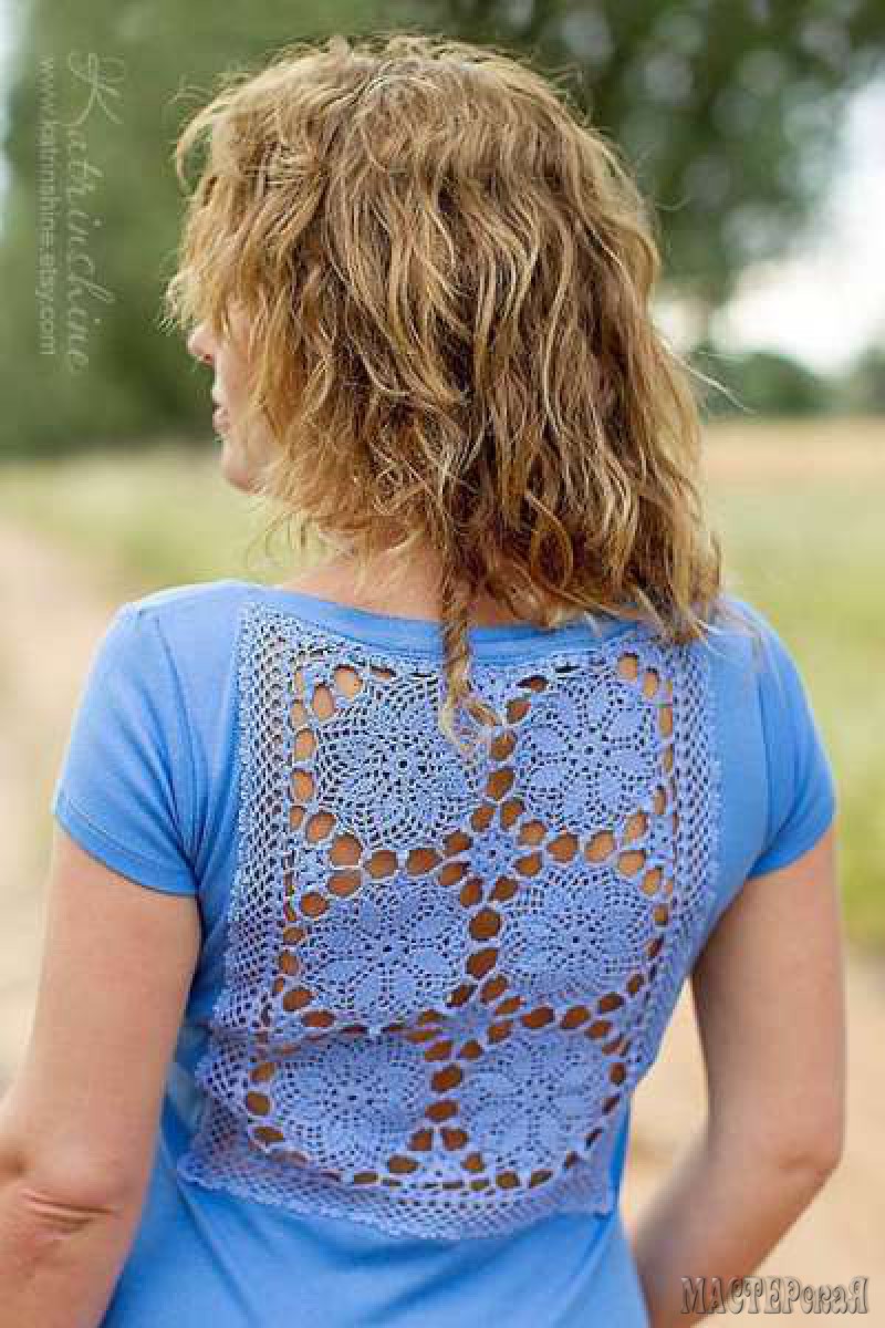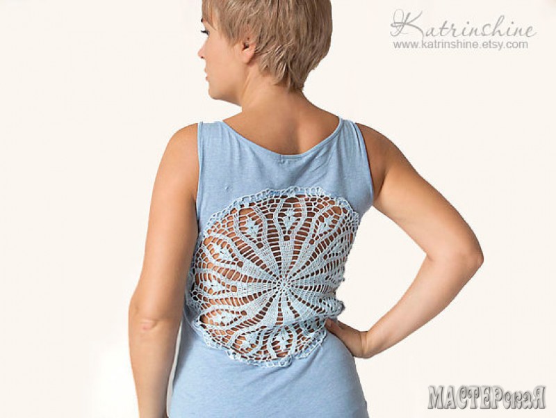 Вяжем салфетку в тон майке и раскладываем её на спинке