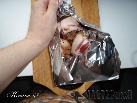 Вальдшнеп, фаршированный грибами ср, 24/04/2013 - 20:50 Способ выводаПосмотреть в виде фото Посмотреть в виде слайдов Фото вальдшнепа выставлять не буду, полюбуйтесь только перышками. Обработанного вальдшнепа замочить в холодной воде на сутки или хотя бы на ночь. Затем обсушить его салфеткой, натереть солью и специями. На сковороде поджарить свежие шампиньоны на сливочном масле. Часть грибов положить на фольгу. На них - вальдшнепа, нафаршированного теми же жареными шампиньонами. Обложить грудинкой И хорошенько завернуть всё в фольгу. Поставить в духовку часа на 1,5 при 180-200 градусах. Готового вальдшнепа немного остудить, затем развернуть. Пока готовила, на улице сильно и резко потемнело ( дождь грозовой пошел) и фото неудачно получились(((((( Птицу разрезаем, кладем на блюдо вместе с грибами и грудинкой. Подавать с отварным картофелем и овощами. Мясо вальдшнепа получается очень нежным. Это настоящий деликатес.Приятного аппетита!!! Опубликовано на masterskaja.net.Копирование с указанием источника приветствуется. Голосование за работу Не понравилось0 Понравилось0 Очень понравилось0 Отлично2 Отправить в Мой Мир Добавить в закладки Яндекс Добавить в закладки Вконтакте Класс! Рассказать в ЖЖ Добавить на Facebook Tweet This! Отправить в Мой Мир Рассказать в LiveInternet Добавить в Google Bookmarks Добавить на MicroBloggy Похожие материалы Курица с медом и... Крылышки в беконе и... Индейка в медово-... Куриные грудки на... Куриные рулетики с... пт, 17/05/2013 - 22:28 #1 Наталка эх....хоть разочек бы попробовать(((я даже живьем его не видала сб, 18/05/2013 - 07:22 (Ответ на #1) #2 Ксения 68 Живьем я тоже не видела. Мы на весенней охоте были, вот наши охотники и добыли. Сказали, что вся охота на вальдшнепа длится всего 20 минут. Он небольшой совсем, но мясо - нежное. сб, 18/05/2013 - 09:50 #3 Наталка ой,какой красивенький!!!!