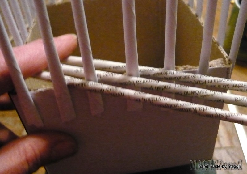 Ваза из квадратной коробки с горизонтальными трубочками. МК