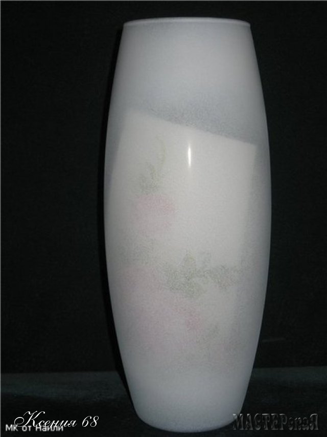 то есть там где предположительно будут мотивы салфетки. И плавно ведём красочку по всей вазе,