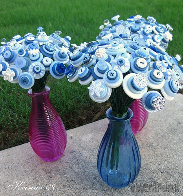 По желанию можно еще добавить основание под пуговицы, сделанное из плотных материалов. Вот один цветок готов! Сделайте букет и наслаждайтесь своим произведение искусства