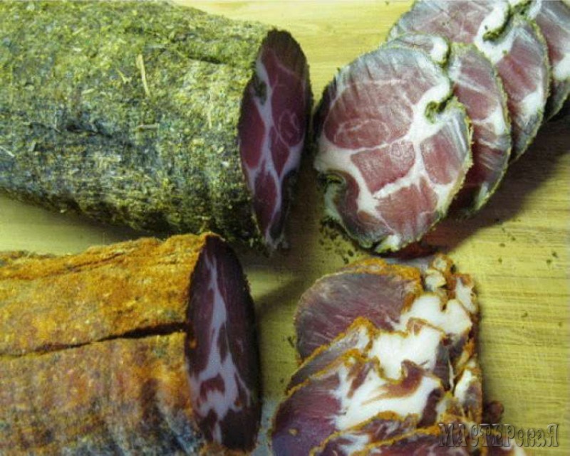 Помещаем наше творение в прохладное, проветриваемое и сухое место недели на 3 -4. У меня только одно место в квартире подходит пот эти требования – холодильник (no frost: 6-8 градусов, периодический обдув и осушение). Я стараюсь выдержать не меньше 4-х недель, чем дольше, тем вкуснее. Учитывая то, что шея не постная, а с жирком, то готовый продукт не пересыхает. Жирок проникает в ткань мяса и делает его особенно нежным.