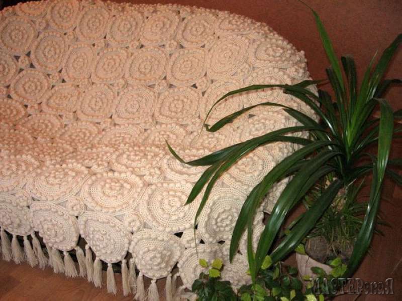 Это потрясающее покрывало связано крючком из отдельных объемных мотивов - медальонов. На первый взгляд кажется, что работа очень сложная, но вязать отдельными мотивами всегда легче, чем целым полотном. Красивое покрывало, связанное из различных мотивов, отлично украсит ваш дом! Кстати, из этих мотивов получится шикарная шаль.
