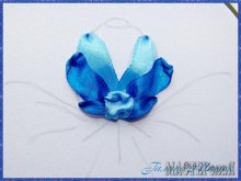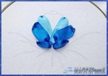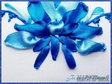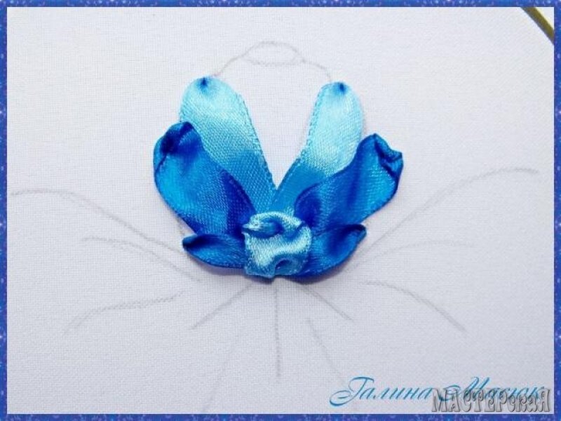Такими же перекрученными на кончике ленты "стежками с завитком" вышейте нижние лепестки цветка. Лента синяя (1,7см).