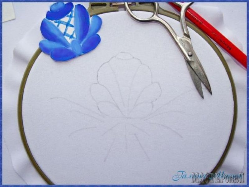 Я время от времени добираюсь до этих сюжетов и вышиваю их лентами. Необыкновенное удовольствие получаю от процесса. В последнее время прорабатывала мотивы гжельской росписи. Вышивку одного элемента сегодня хочу показать вам. Может, кому тоже захочется прикоснуться к волшебству!))))