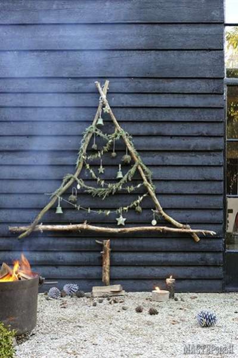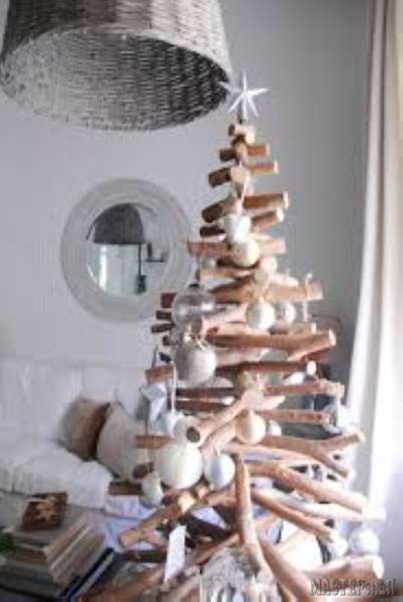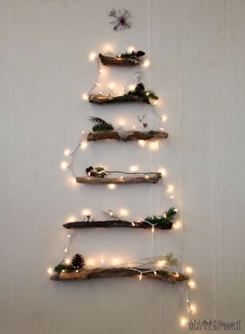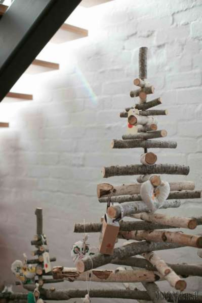 Мне почему-то захотелось назвать эту ёлочку из веток "Ёлка эконом-класса" На самом деле она очень популярна и достаточно креативна. Из таких елок делают панно, приклепляют их на стены, украшают ёлочными игрушками и герляндами. Может кому-то пригодится эта идея?