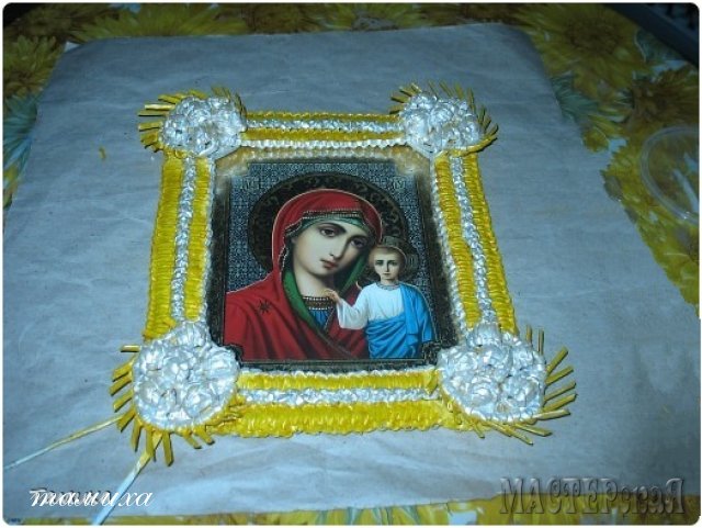 Атрибут, который подлежит оплетать- будь то икона, картина, зеркало и т.д. Для весомого предмета нужен дополнительный каркас из проволоки.