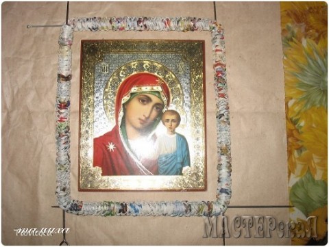 Ну вот всякое видела из газетной лозы, но икону!!!!!!