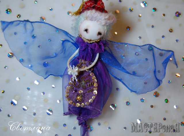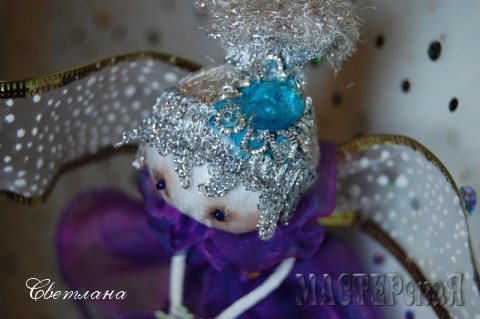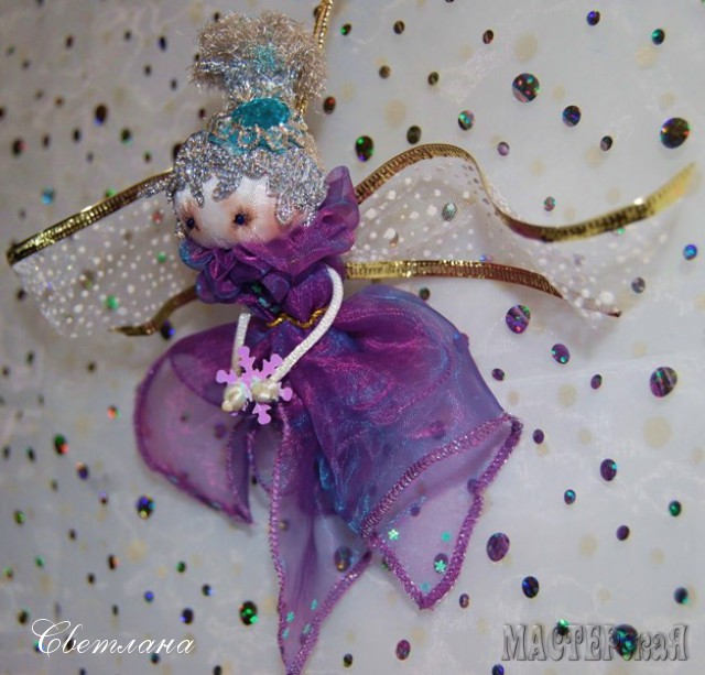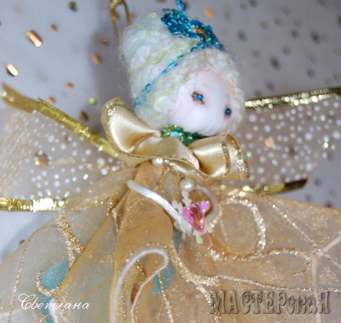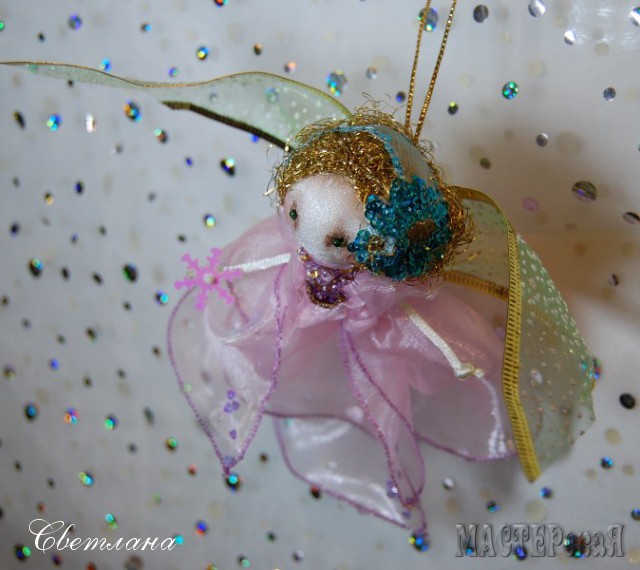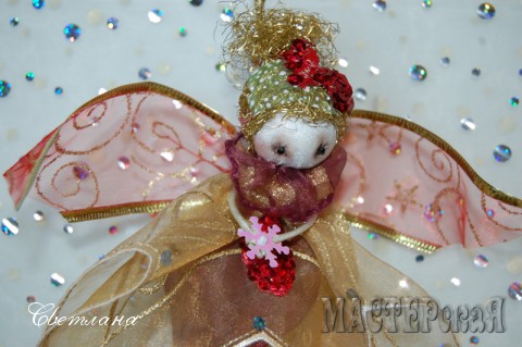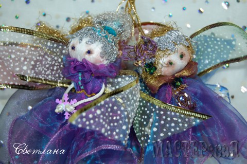 Ангелочки. Высота 14 см. Материал: бисер, пайетки, стразы, органза, ленты, шнуры, элементы ручной вышивки, латунные бубенчики