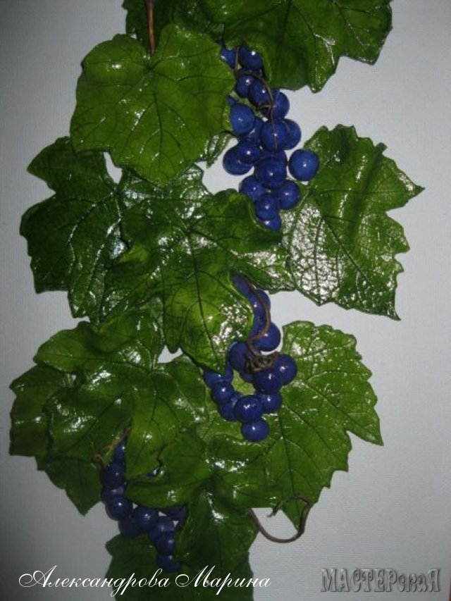 Будет теперь у кого спросить. Виноград очень красивый. Отличная идея использовать настоящие листья