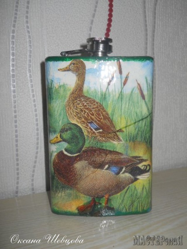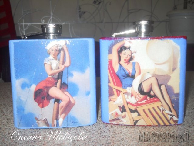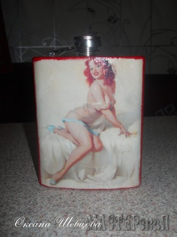 Ну вот сто раз видела эти фляжки, а мысли задекупажить их в голову как-то не приходили.Отличная идея!!! И Исполнение тоже -