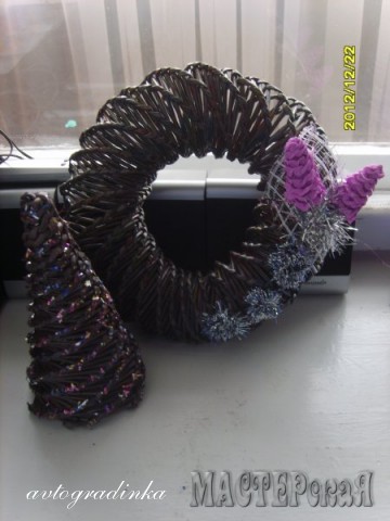 Очень ровненький и аккуратный венок получился, но я бы чего-нибудь зелененького при его украшении добавила: веточку ели, например: зеленое с коричневым отлично сочетается (не обижайтесь только на меня, хочется его ещё лучше сделать)....Хотя он и так красивый
